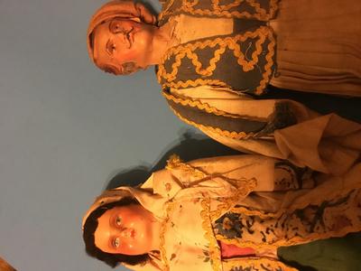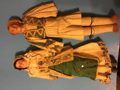 I picked up these two dolls at an auction recently. The body of each was sewn by machine as well as their costume.