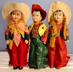 Many variations of cowgirls and cowboys were manufactured by all companies during this era. The tiny gun toting images still bring a smile as they reflect the old west of the 1940s and '50s.