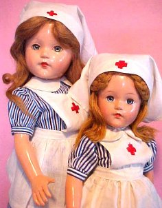 This magnificent girl is 27" ..........has the yarn hair.........and wears a spectacular Red Cross outfit.