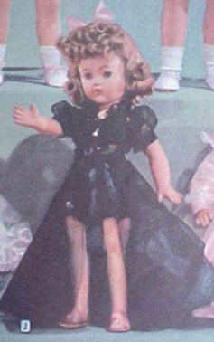 I have a honey Effanbee doll from the 1950s. She is currently in her bridal dress but originally she also had an after wedding outfit of blueish shiny …
