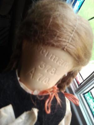 Another is a German wooden head/human hair/cloth body, unmarked but sweet as can be. Two small German babies my father brought back during WWII that are unmarked and my mother named Pete & RePete!