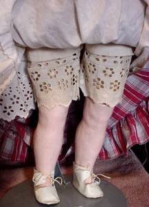 wears eyelet slip and matching pantaloons.......and an extra padded