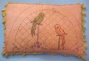 Lovely vintage or antique pillow.....embroidered with birds and flowers.