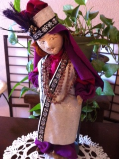 HE HAS LEATHER GENIE SHOES AND HIS FACE IS VERY FADED AND FEELS LIKE VERY SOFT LEATHER. HE HAS A PIECE OF WOOD? IN HIS MOUTH LOOKS LIKE SOMETHING WAS BROKEN OFF A SMOKE????? IF ANYONE KNOW WHAT HE COULD BE PLEASE HELP!!!! I WOULD APPRECIATE IT. THANKS A BUNCH!!!