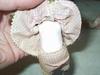 She is 4.5 inches tall has big Cupie doll eyes, that do not move. The only mark I can find is on her L. shoulder. It appears to be JF or JT but I think it is JF.