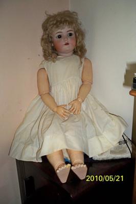 Bought this with the cedar hope chest she was stored in from an estate sale. The lady that passed had her since she was a little girl and kept her in the chest covered with an old handmade grannie quilt.