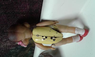 Nobody knows the story behind it.the doll us 7 1/2 inches tall bottom of the left shoe says JAPAN there are no other markings that I could find. It is a wind up from the back. Rubber head rubber that slides over the metal legs arms shoes and socks are molded wilt leg.