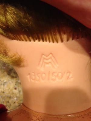 The markings on the doll are like a stacked M with numbers and the number 52 on arm joints. I am enclosing photos to see if it can be identified.