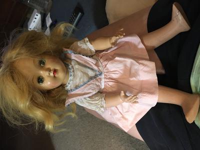 This doll was given to me around 1953. I believe I have her in her original dress that has two tiny buttons.