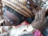 Her legs are made of the mystery fiber. Her slippers are made of black velvet and some fluffy pom pom looking things for decoration. The heads are made of gourds, and come off of the bodies.