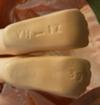 It has a triangle on the lower back. The triangle stands out (not in). It has VH-17 on one foot and 39 on the other. No other markings.