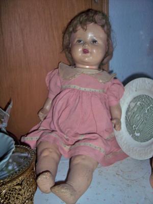 You're lucky the composition on your Grandmother's doll is in good shape, from what I can see in the lone picture. Storing dolls in attics and basements is a very poor idea. Heat damage from the attic and moisture damage from the basement has ruined many a doll.