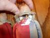 The arms are sewn to their sides, and they are firmly stuffed with wood shavings and I believe wool. That's about all I know about these two.
