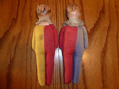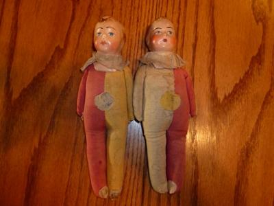 I found these two boy dolls and they look to be very old. There are no marks on either doll.